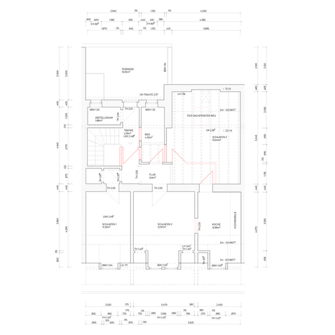 Bestandserfassung und Entwurfsplanung für die Sanierung und den Ausbau einer Dachgeschosswohnung.